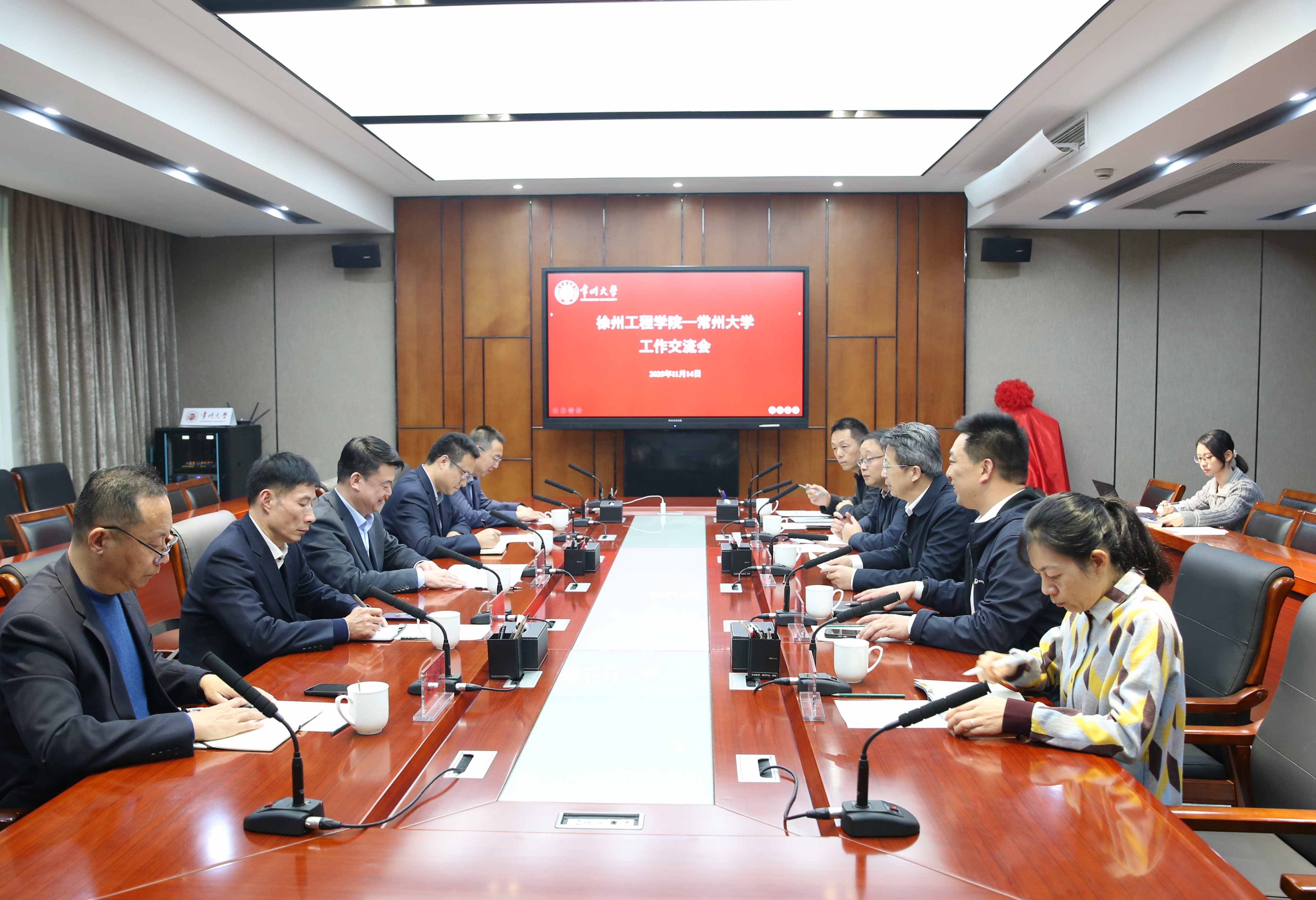 11月14日下午,徐州工程学院党委书记刘洋一行来校调研交流,我校党委书记徐守坤出席会议。两校党办校办、组织部、发规处、研究生院、学科办等相关职能部门负责人参加会议。