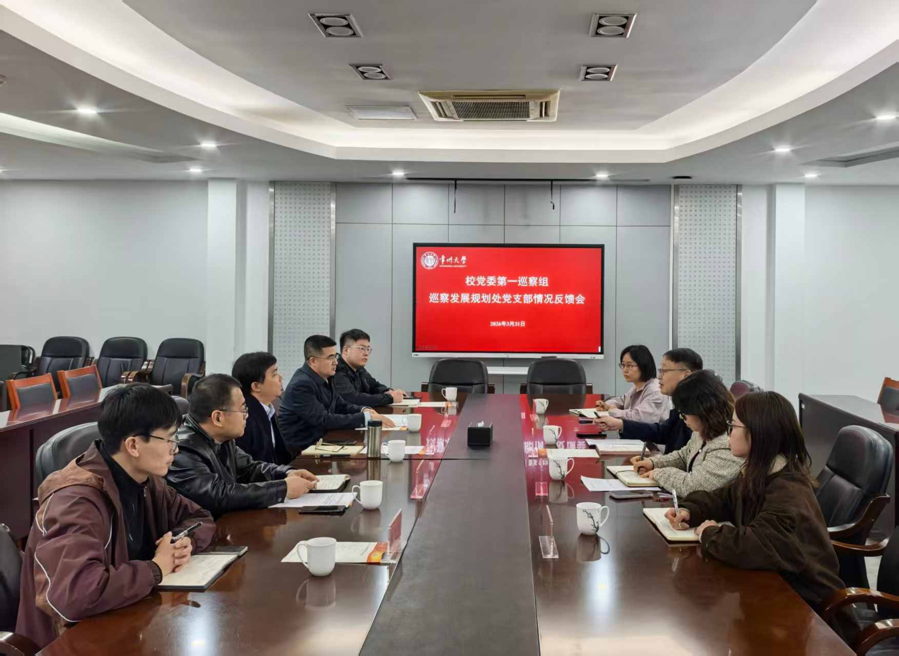 根据党委巡察工作领导小组部署,2026年3月31日,党委第一巡察组向发展规划处党支部反馈巡察情况。党委常委、纪委书记、党委第一巡察组组长吴洪宝,副组长夏纪森,第一巡察组成员,发展规划处党支部全体人员参加会议。发展规划处党支部书记田轶主持并作表态发言。